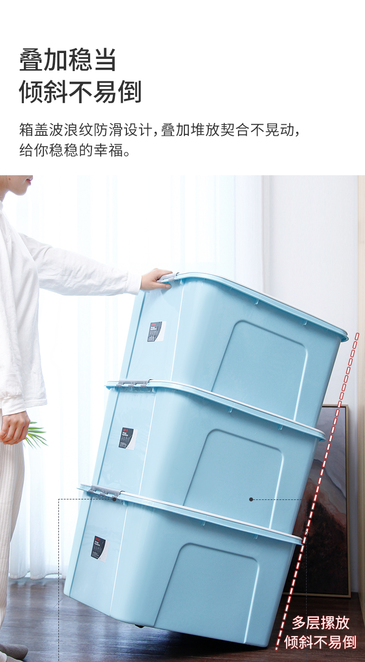 西仕多服布団収納箱大サイズ子供用おもちゃ整理箱85リットルベルトホイールロッカー抗圧引越し箱1つ包装箱