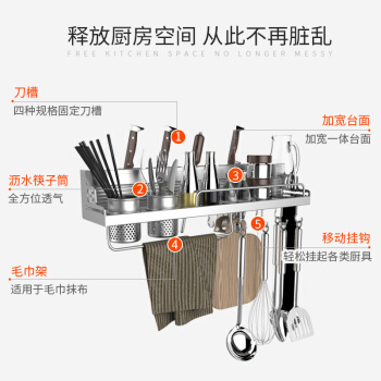尚美徳厨房置物棚壁掛調味料棚無料打孔厨房具収納刀架調味料棚お箸立て家庭用品亮銀款-60 CM(ダブルカップ8勾)【写真価格ブランド見積】-