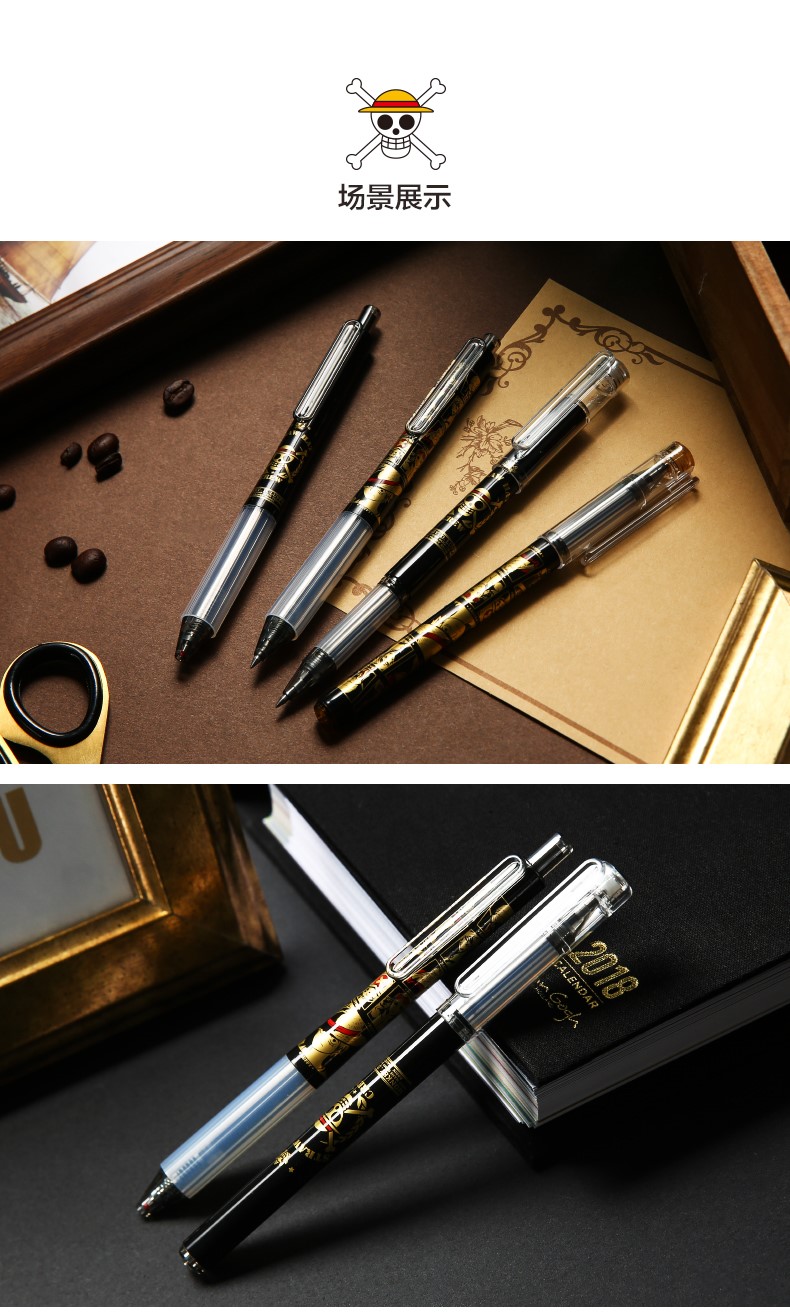 海賊王連名限定ブラインドペンは中性ペン0.5黒速乾直液ペン学生用サイン炭素水筆日系日本アニメ文具航海王限定ブラックボックス3本【ブラックヘッド0.5】ランダムに抜き取ります。