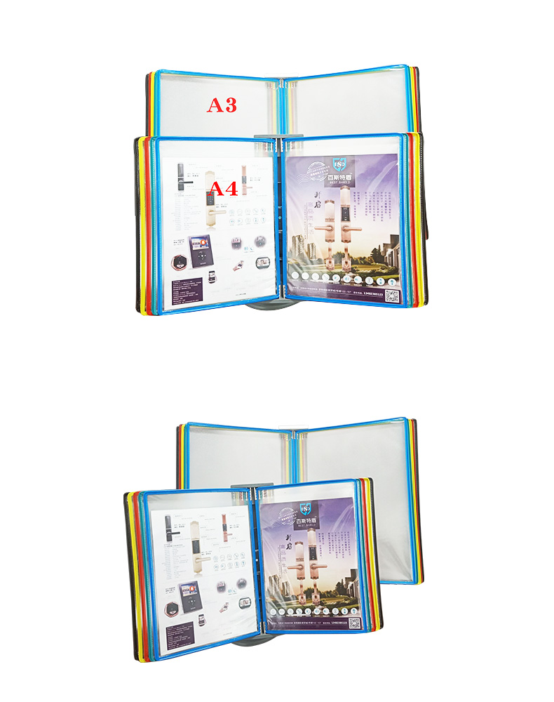 A 4横型壁掛け資料棚つり下げ式スライド式回転軸フォルダ壁式ページ展示フレームワークフレーム壁掛け式ファイル棚A 4 5ページ横型カラー展示棚【写真価格ブランド見積】-