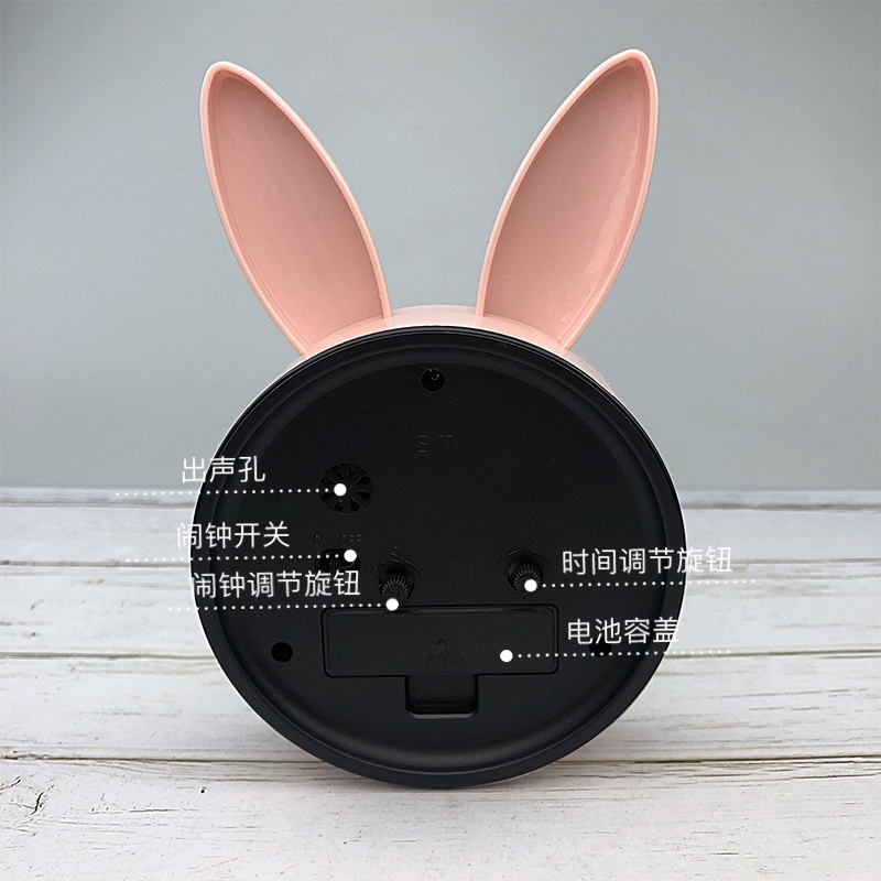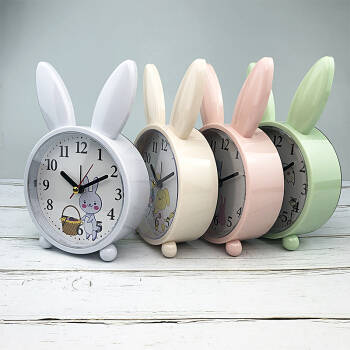 机の上の時計の静かな音の小さい目覚まし時計のアイデアの漫画の子供専用の寝室の枕元の時計のデスクトップのかわいい時計の振り子のウサギのピンク色は秒の芯を掃きます/