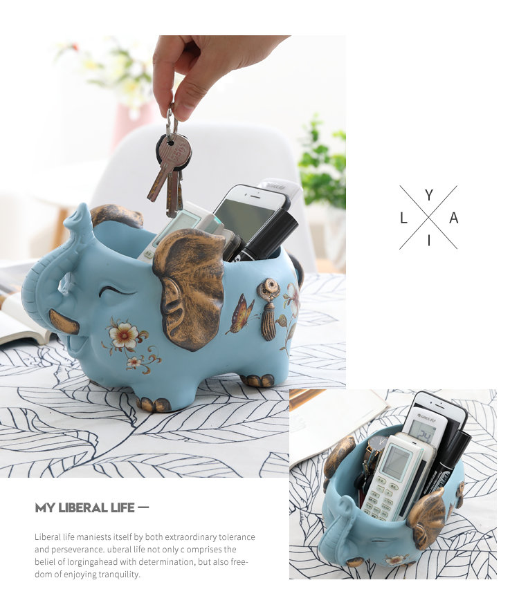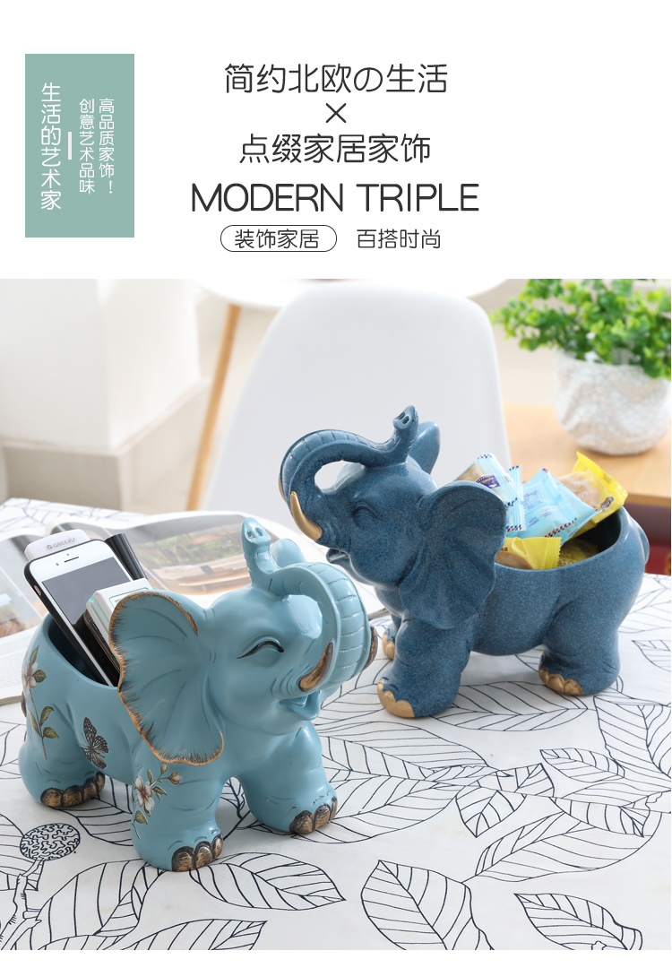 时光旧巷北欧insデスクトップ个性放键的收纳盒玄関入门口欧式树脂象收纳摆件富贵吉祥蓝大象收纳【图价格ブランド报价】-