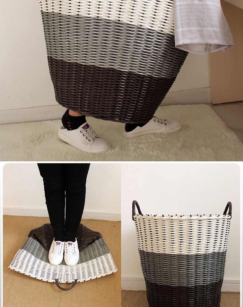 污い衣かご収納かご污い衣かご藤编プラスチック韩国简约家庭用膨张衣衣蓝收衣娄収納枠特大号ブラウン白色系【写真価格ブランドオファー】-