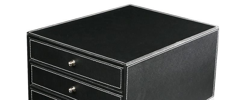 利蓝(LEADLAND)办公室皮革文件柜办公用品商务A4文件管理箱桌面资料收纳盒财务会计整理箱带抽屉 黑色三抽屉A008