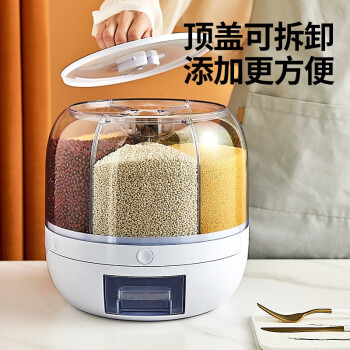 【宝选旋转杂粮盒】宝选 五谷杂粮收纳盒厨房米桶自动出装豆类粮食容器旋转分类收纳盒 【分6格】20斤装【行情 报价 价格 评测】-