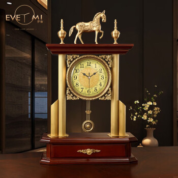 伊弥EVEMI 欧式轻奢实木纯铜座钟仿古客厅钟表装饰大号马到成功台创意个性钟表 马到成功【图片 价格 品牌 报价】-